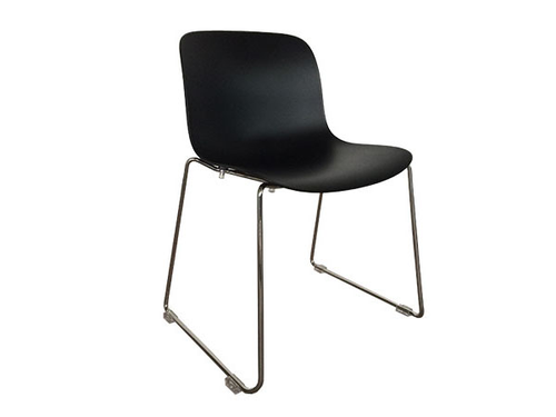Chair with seat in polycarbonate with sled base in fine and aerial steel. The delicate curves of the seat offer optimal comfort by following the shape of the body. Sturdy and stackable, this chair will find space anywhere, both in private and public environments.
