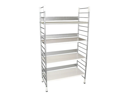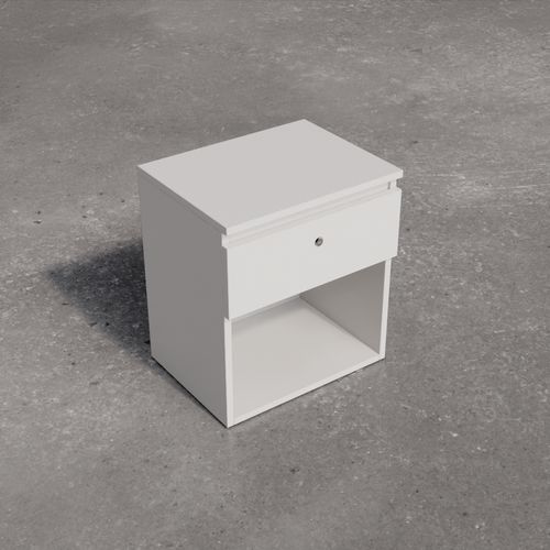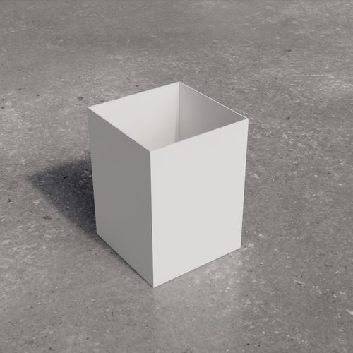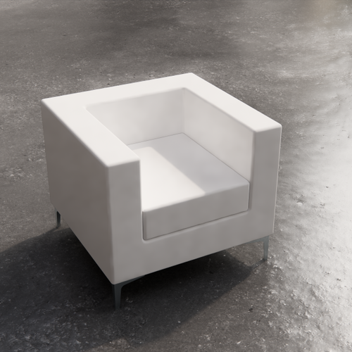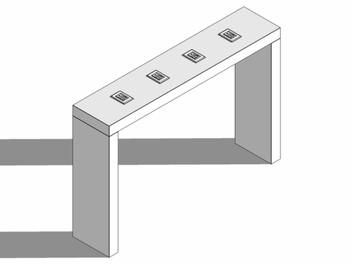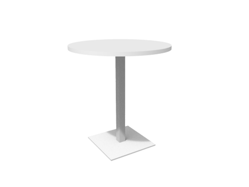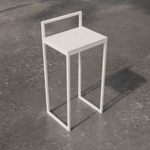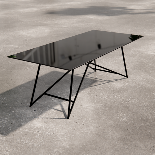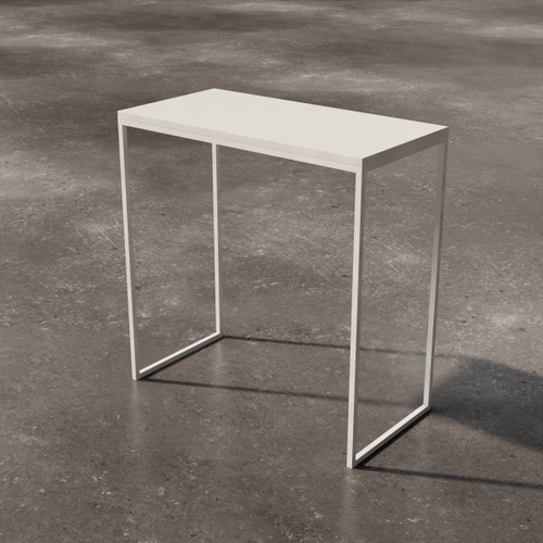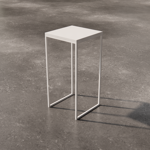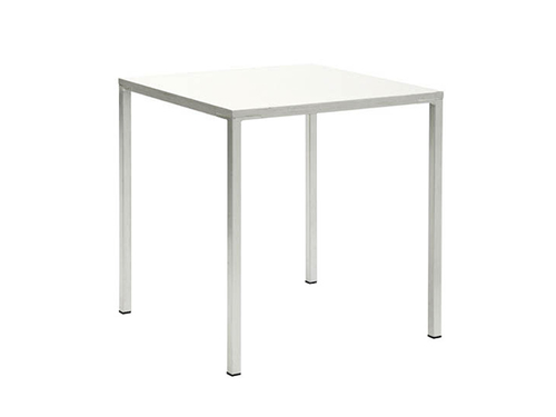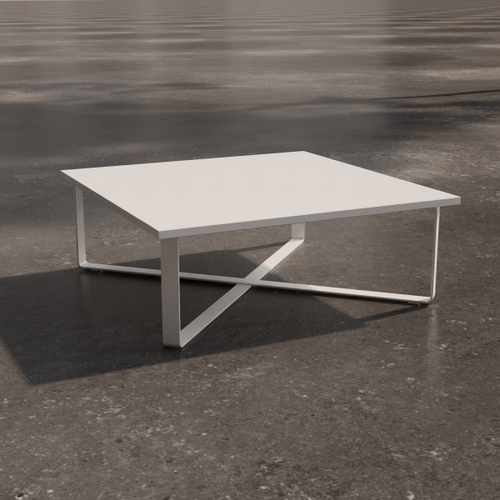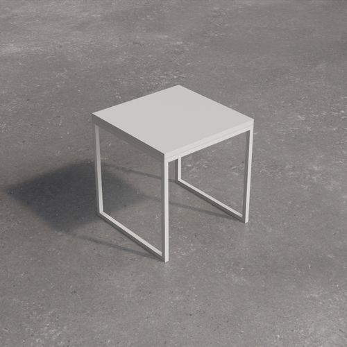 Low square table with painted laminate top. The supporting structure is a cross-section tubular with a square section.